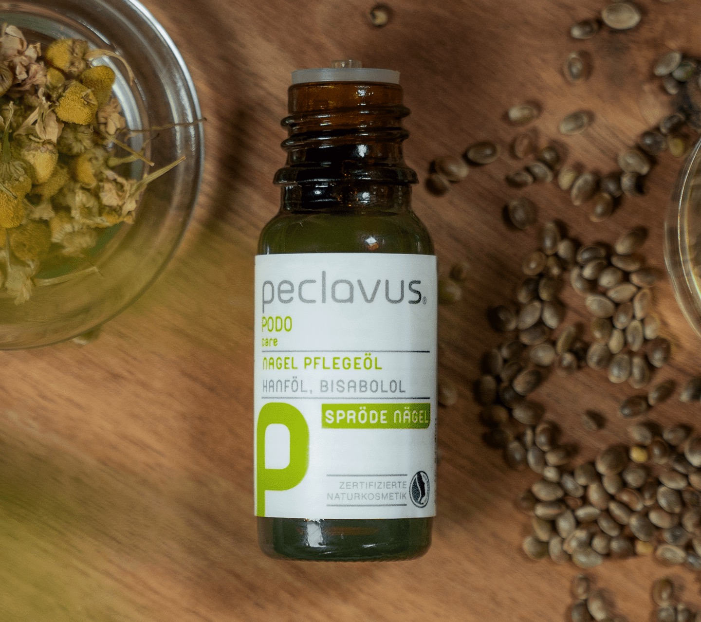 Das peclavus® PODOcare Nagel Pflegeöl verleiht Nägeln wieder seidigen Glanz und stabilisiert das gesunde Nagelwachstum.
