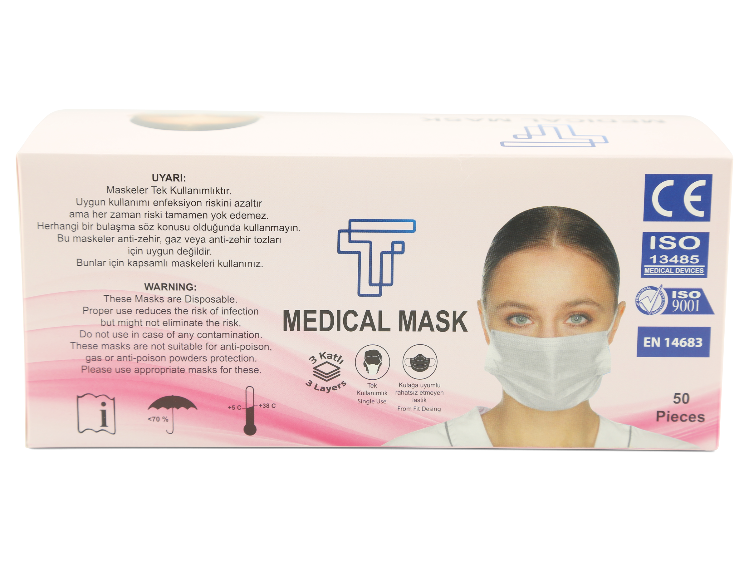 Produktinformationen "Medical Mask Einmal-Mundschutz 3-lagig weiß 50 Stück | EN 14683 ISO 13485"