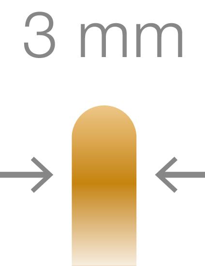 Die einfache Anwendung wird durch die fertig zugerichteten Spangen ermöglicht, die eine variable Anpassung an den individuellen Nagel ermöglichen. Insbesondere für sehr dünne Nagelplatten und bei hochempfindlichem oder entzündetem Nagelfalz zeigt die Klebespange ihre Stärken. Sie wird nicht unter die Nagelkante eingehängt und bleibt bei der Applikation 2-4 mm flacher als die Nagelwölbung. So entfaltet sie ihre sanfte, aber nachhaltige Biegekraft.
