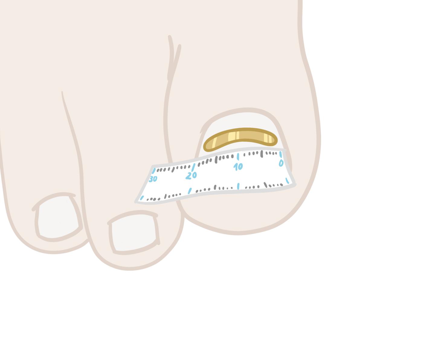 Einfache Anwendung Goldbeschichtung wirkt entzündungshemmend und anti-allergen Fertig zugerichtete Spangen Variable Anpassung möglich Geeignet für sehr dünne Nagelplatten und empfindlichem oder entzündetem Nagelfalz Sanfte, aber nachhaltige Biegekraft Attraktive Optik durch Goldbeschichtung SterilisierbarFür die korrekte Wahl der Spangengröße wird die Nagelplatte mit Hilfe der Messhilfe in mm ausgemessen und einer Spangengröße mit derselben Zahl zugeordnet.
