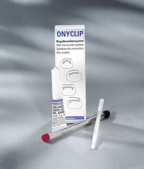 Das Onyclip-System arbeitet mit einer speziellen Spange, die mit nur zwei Punkten Klebe-Gel befestigt wird. Dieser Ansatz eliminiert die Notwendigkeit einer flächigen Verklebung und vermeidet somit eine Korsettwirkung. Sofort nach Anbringen der Spange ist die Zugkraft für den Patienten spürbar, was eine sofortige Linderung und Korrektur ermöglicht.