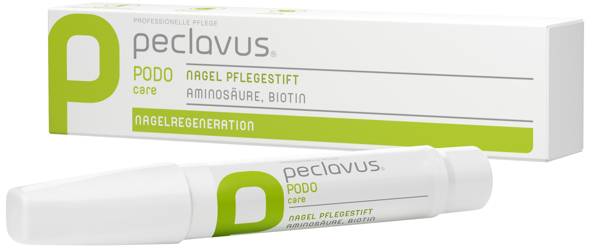 Der peclavus® PODOcare Nagel Pflegestift ist gesunde Nahrung für Nägel und Nagelhaut. Er fördert den Aufbau der Nagelsubstanz durch natürliche Aminosäuren und Biotin. Durch das spezielle Carrier-System diffundieren die Aufbaukomponenten bis in die Nagelmatrix und sorgen für Regeneration, Kräftigung und Neuaufbau des Nagels von der Wurzel her.