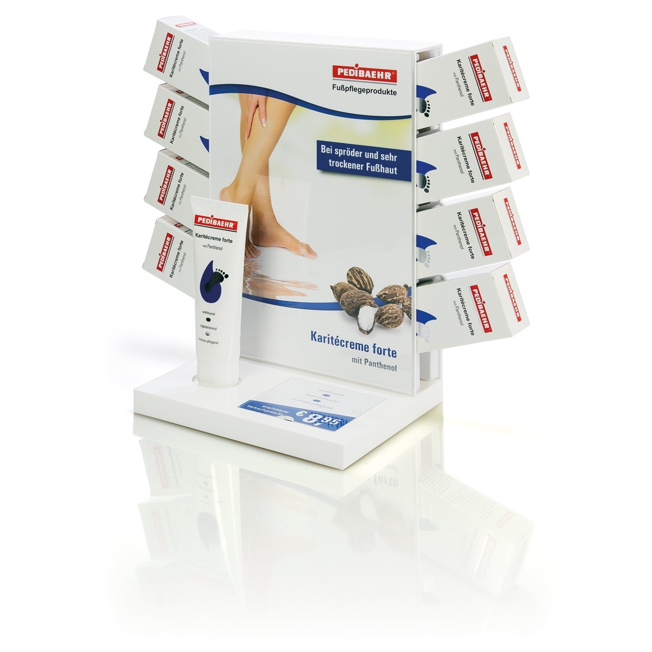 - attraktives Thekendisplay zur Aufnahme von 8 PEDIBAEHR-Produkten (jeweils 4 links und rechts) und einem Tester