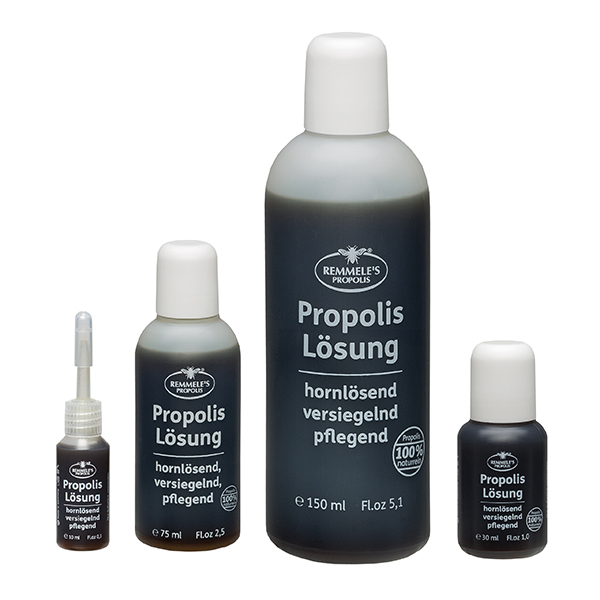 REMMELE's PROPOLIS Lösung ist ein natürliches Keratolytikum, ideal für vielfältige Hautpflegeanwendungen. Von der Auflockerung von Verhornungen bis hin zur Pflege bei Tätowierungen, Akne und für die Tierpflege, bietet es vielseitige Einsatzmöglichkeiten. Propolis enthält wertvolle Bioflavonoide und hemmt die Vermehrung von Mikroorganismen und Keimen. In der weiterführenden Pflege und Therapie wird die Propolis-Lösung auch bei allen dystrophischen und hypertrophischen Hautveränderungen wie zum Beispiel Schuppenflechte, Neurodermitis, Nagelpilz, Warzen, Hühneraugen, Herpes und Rhagaden erfolgreich angewendet.