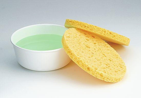 Vor Gebrauch den Schwamm in lauwarmem Wasser einweichen, dann ausdrücken.