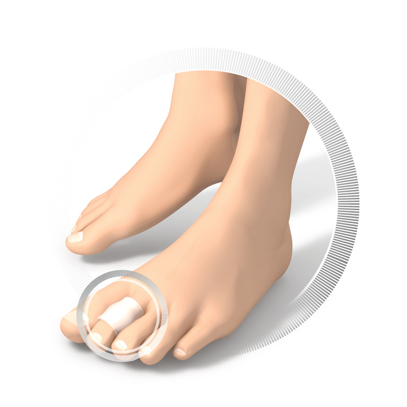 Das betroffene Zehengelenk wird entlastet und die Hornhautbildung eingeschränkt.