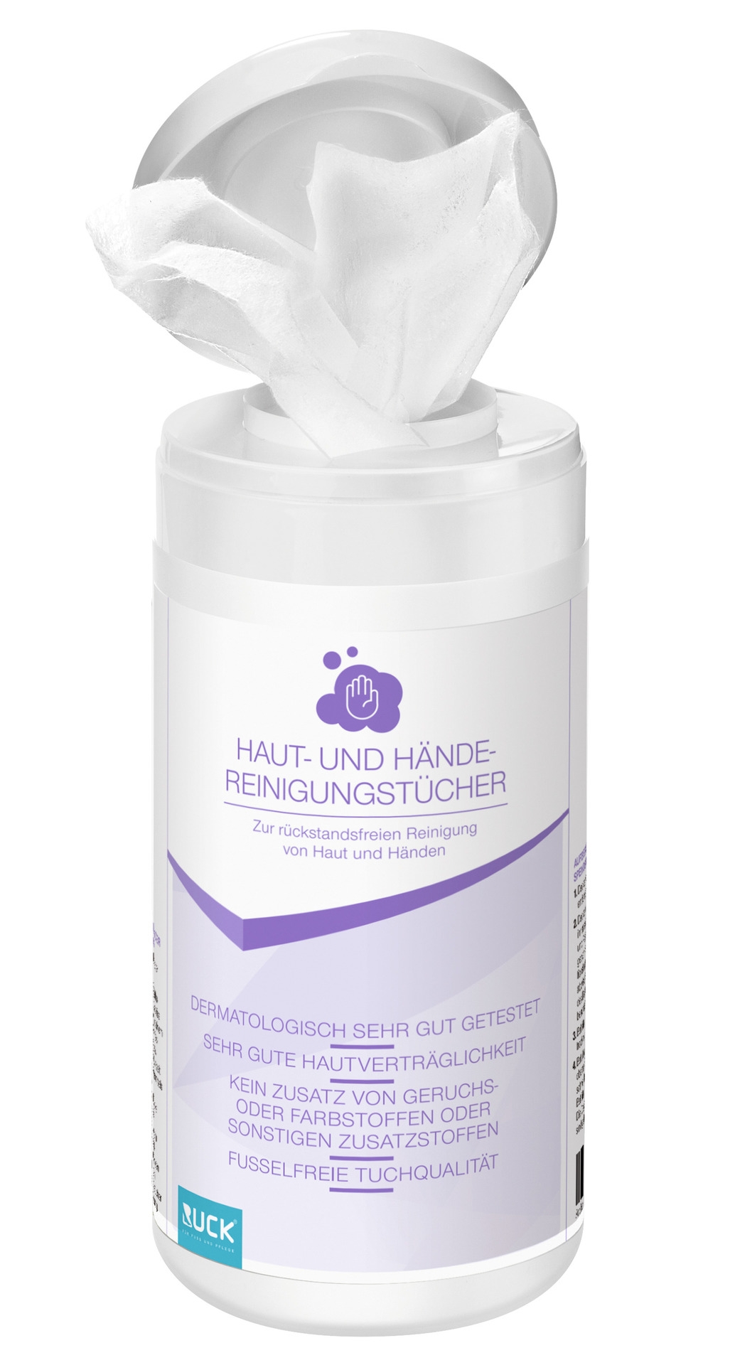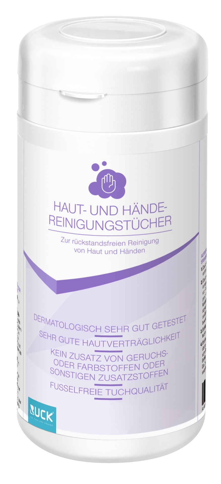Die RUCK Haut- und Händereinigungstücher sind gebrauchsfertige, antimikrobielle Reinigungstücher zur rückstandsfreien Reinigung von Haut und Händen. Sie sind dermatologisch "sehr gut" getestet und weisen eine sehr gute Hautverträglichkeit auch bei häufiger Anwendung auf. Es wurden keine Geruchs- oder Farbstoffe oder sonstige Zusatzstoffe hinzugefügt.