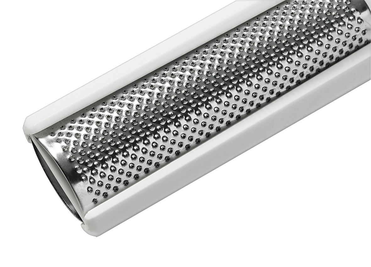 Die nicht rostende Edelstahlraspel kann leicht mit Wasser gereinigt werden.