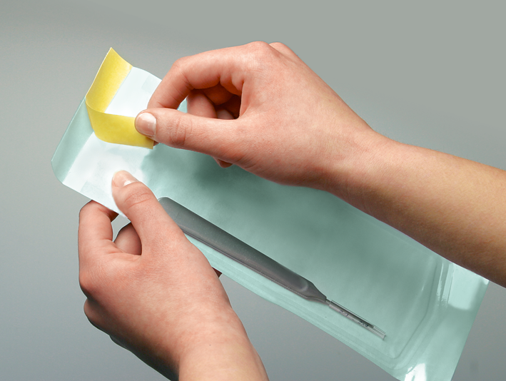 Selbstklebende Klarsichtbeutel für die Sterilisation im Autoklav.