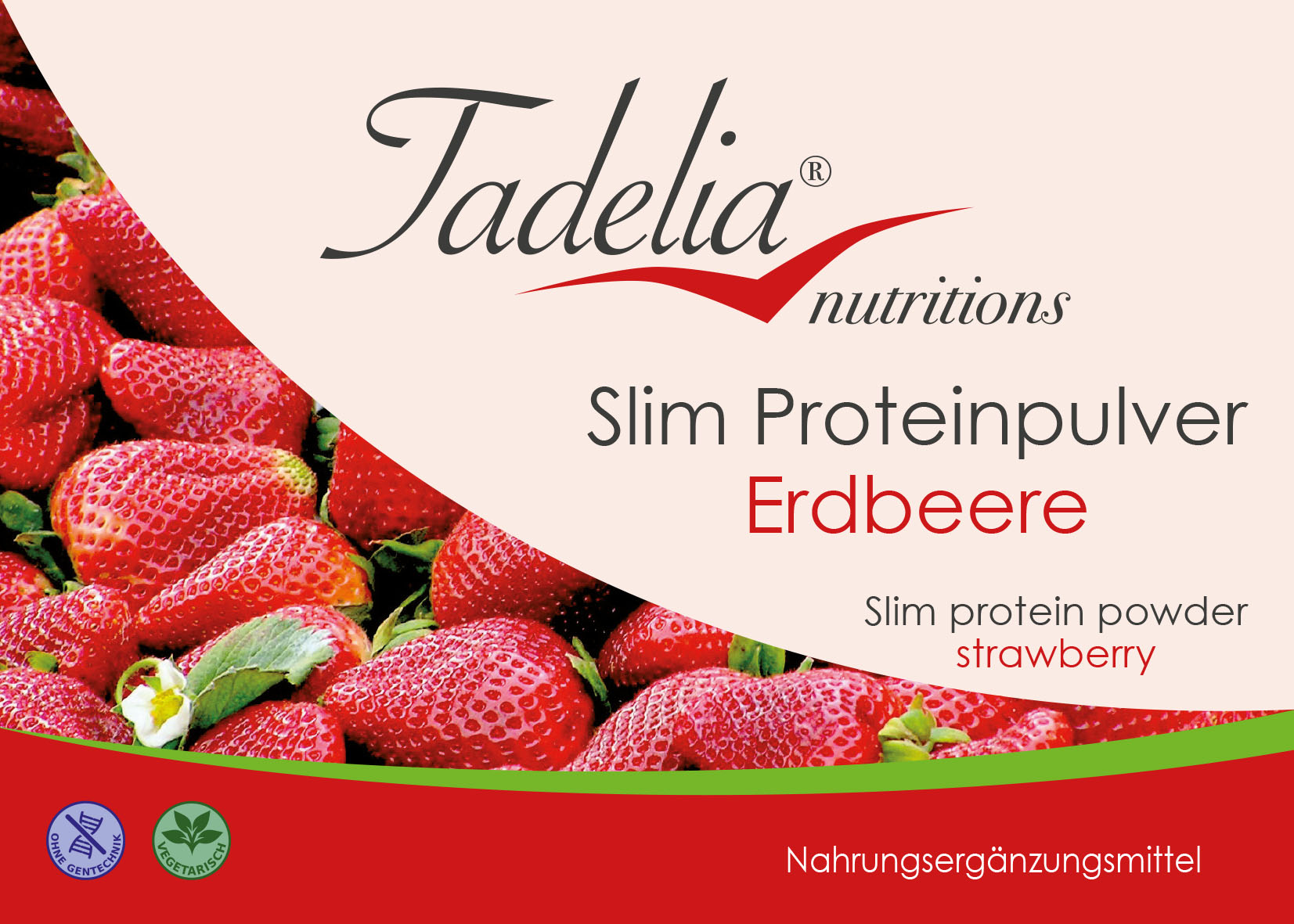 Produktinformationen "Tadelia® Slim Proteinpulver Erdbeere mit Tadelia hCG Stoffwechseldiätplan + Hormony Complex G B12 Tropfen"